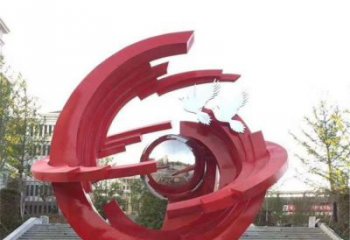 環繞公園的紅色玻璃鋼噴漆飄帶雕塑