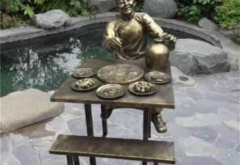 街邊端火鍋人物銅雕讓我們重溫傳統文化