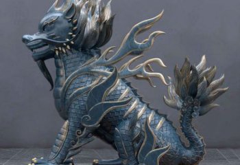 山水間的雅致不銹鋼仿銅麒麟雕塑
