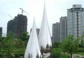 鏡映靈韻:不銹鋼水滴景觀雕塑