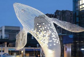 大型不銹鋼景觀雕塑鏤空發(fā)光鯨魚擺件